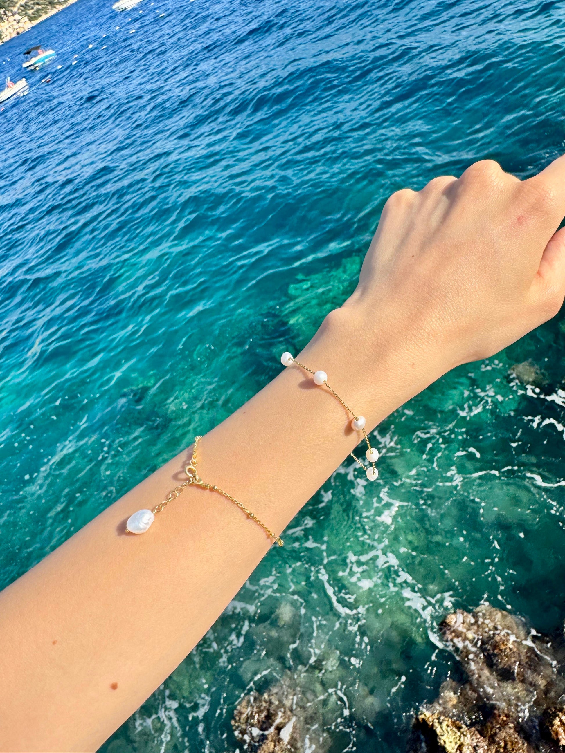 A simply stunning hand picked freshwater pearl pendant set on 14ct gold plated, silver, adjustable chain. wear on its own or layered with our pieces. One of our bestsellers, this stunning set looks equally good day or evening, on the beach or at a party and is the perfect gift.